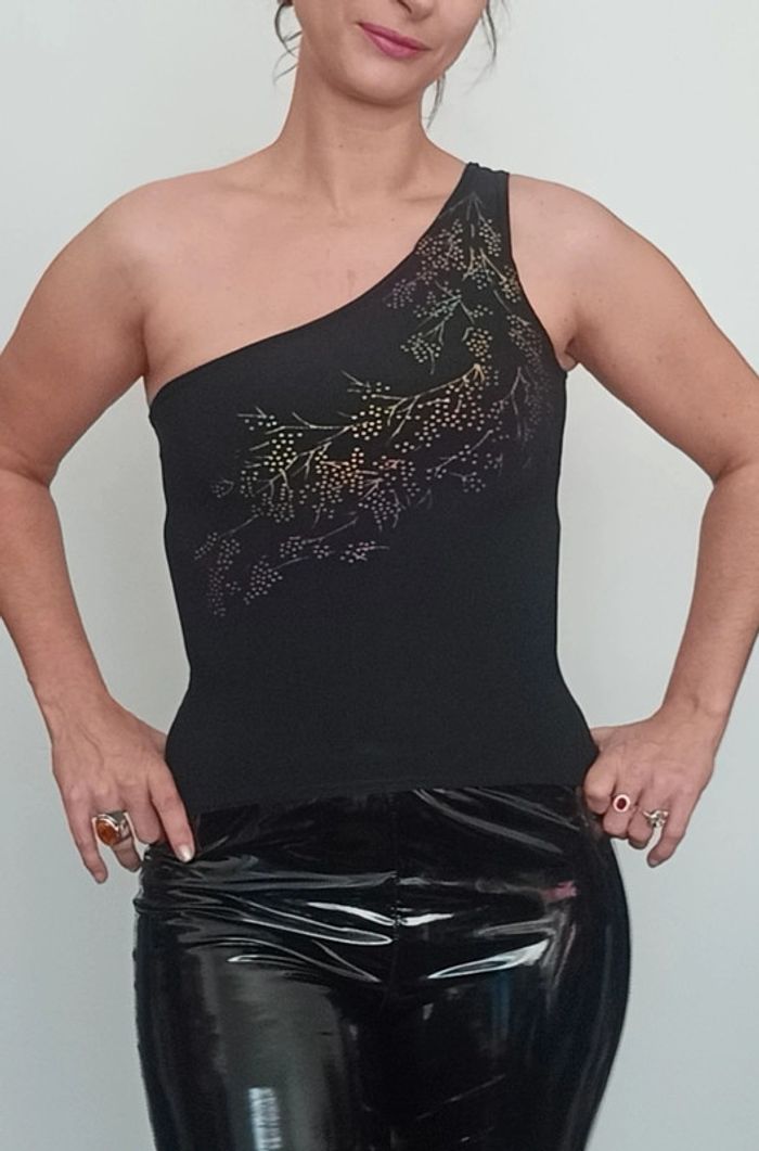 Regardez mes autres articles dans votre taille pour grouper les fdp #poupoupidoutu Top asymétrique une seule bretelles, noir moulant extensible, motif arbre fleuri multicolore, chic et féminin, facile a assortir, taille unique max 38/40 #topasymétrique #topunebretelle #topnoir #topasymetriquenoir #hautasymetrique #topsexy #topete