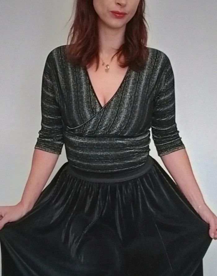 Haut noir cache-cœur pailleté taille 36 - photo numéro 3