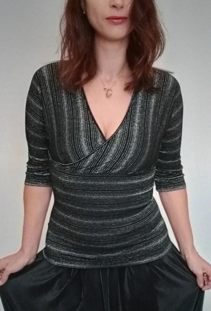 Haut noir cache-cœur pailleté taille 36 - photo numéro 6