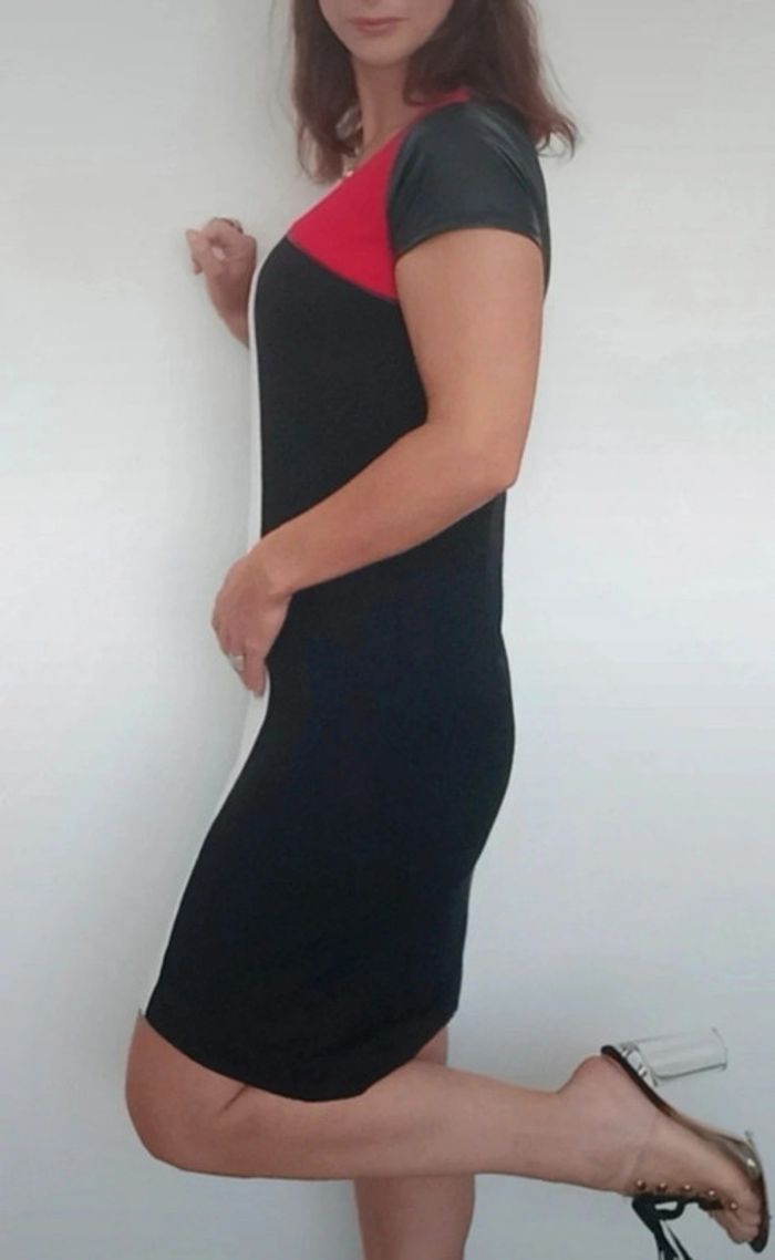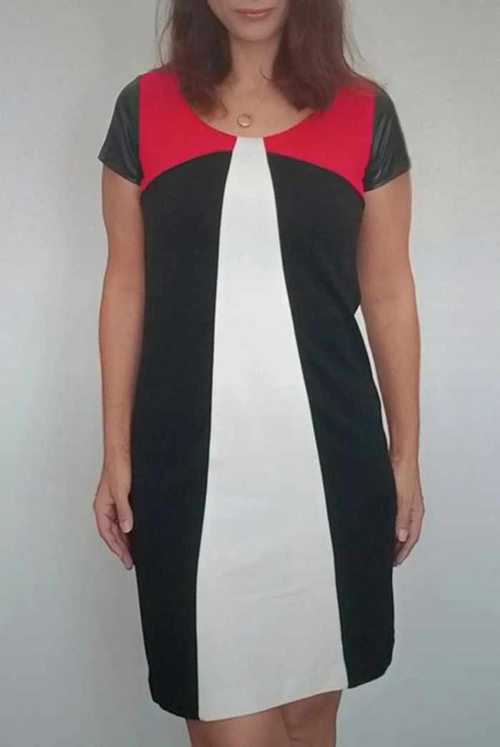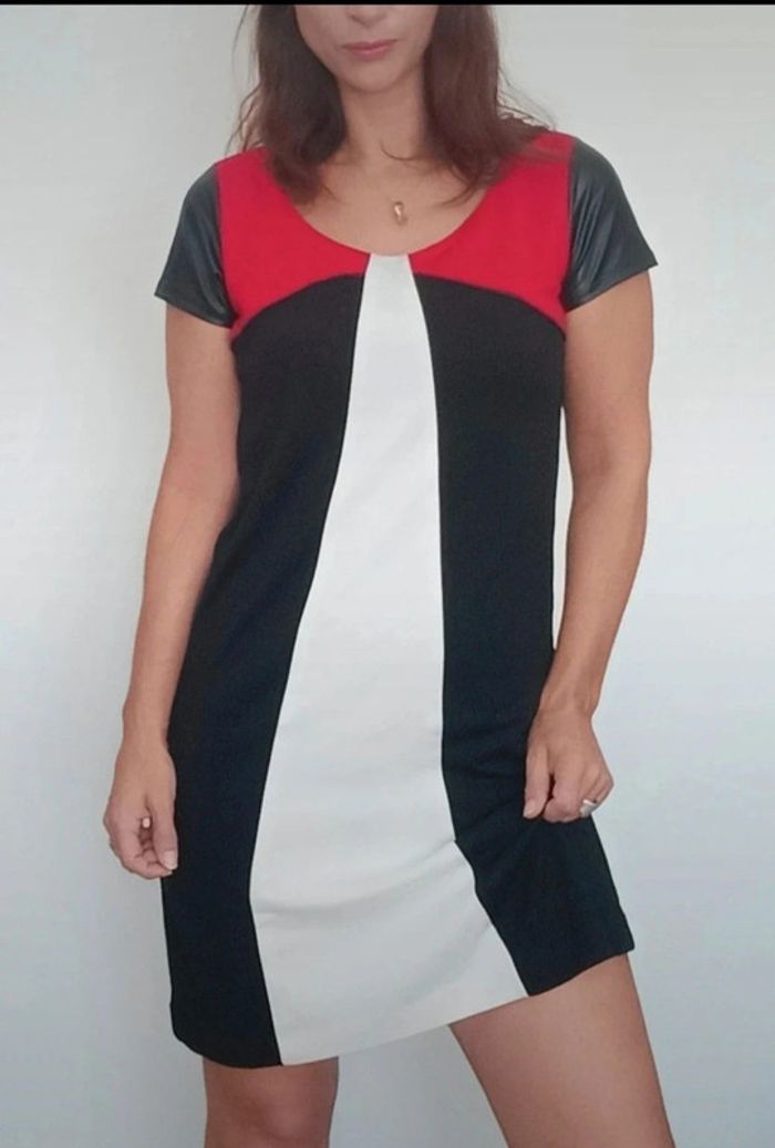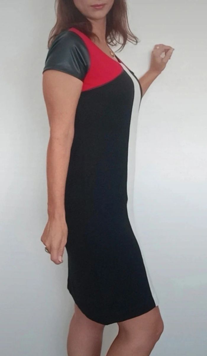 Belle robe courte mais pas mini, tricolore, chic et féminine idéale soirée, manches courtes similicuir #robe38 #robechic38 #robetricolore38 #robesexychic38 #robesoiree38 #robecourte38