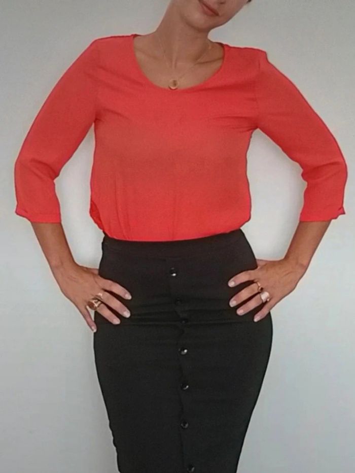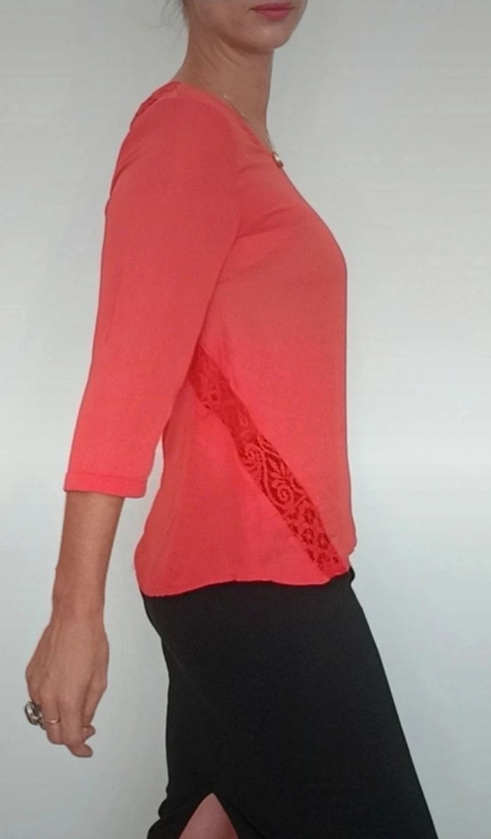 Blouse corail fluide avec dentelle taille 36 - photo numéro 3