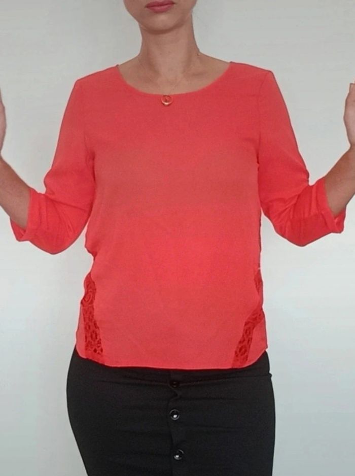 Blouse corail fluide avec dentelle taille 36 - photo numéro 1