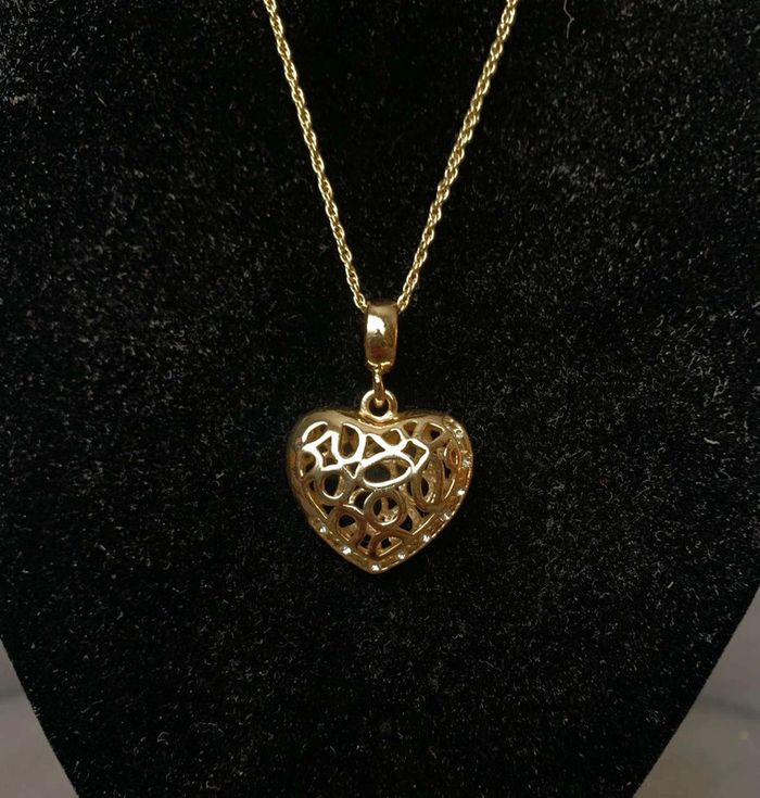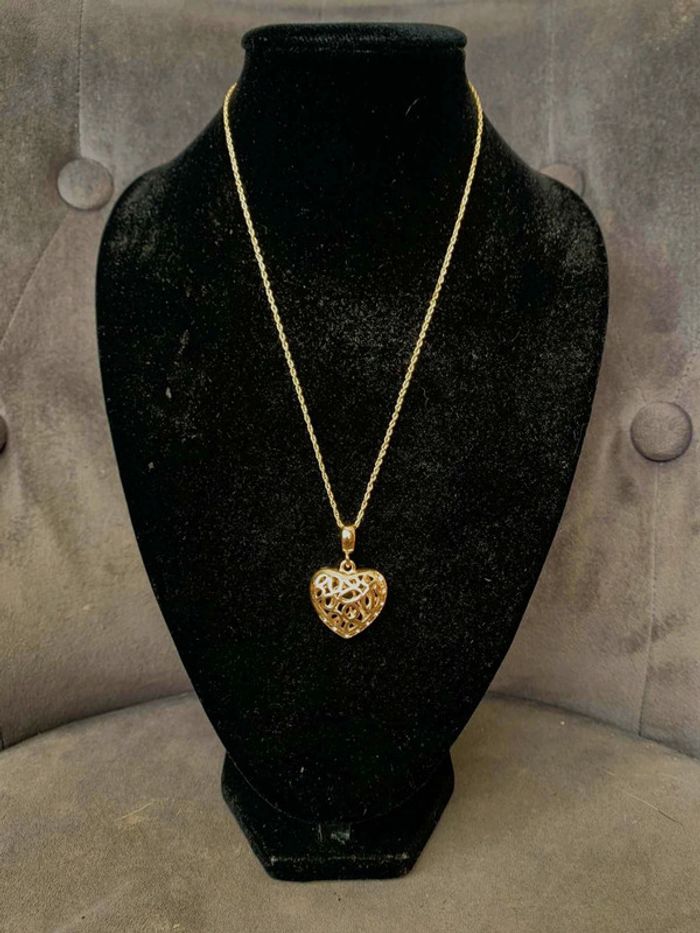 Regardez mes autres articles pour grouper les fdp 😉 Collier composé d une chaîne et d un pendentif coeur ajouré effet dentelle de belle taille en plaqué or tous les deux, poinçonné, idéal cadeau, jamais porté #plaqueor #collierplaquéor #colliercoeur #collier #cadeaufemme #cadeausaintvalentin #cadeausaintvalentinfemme