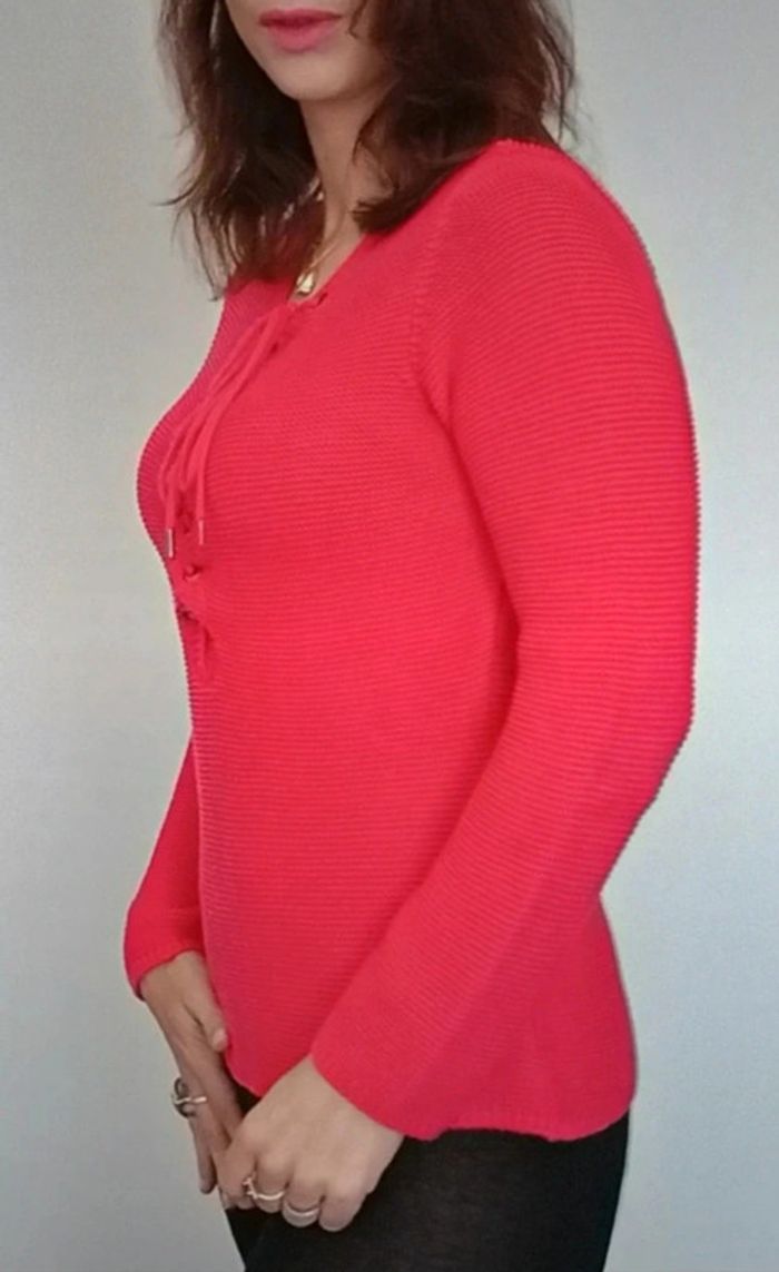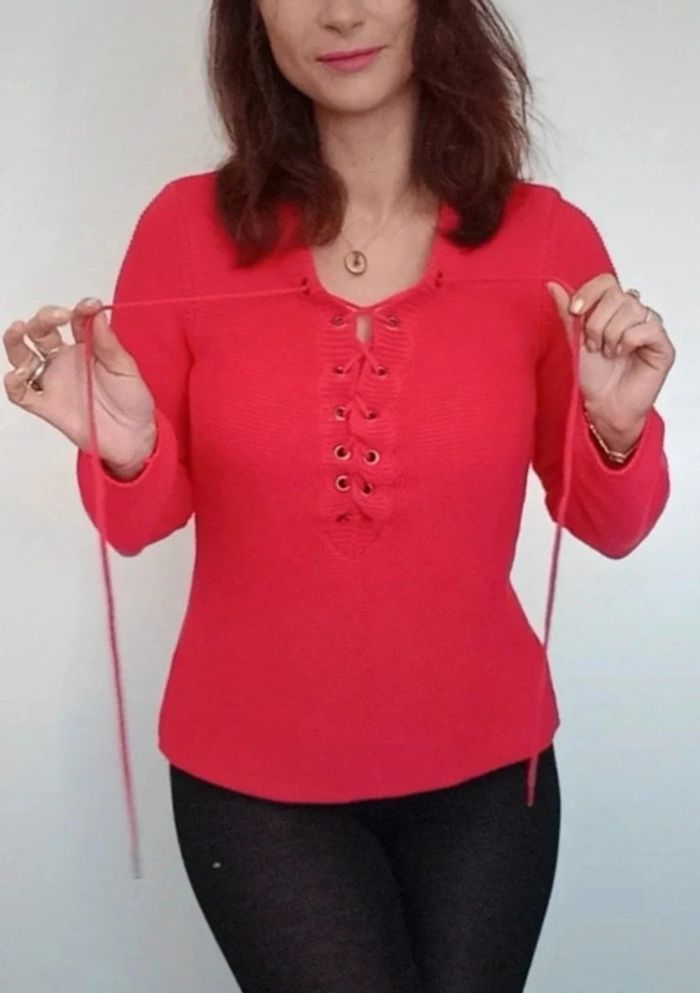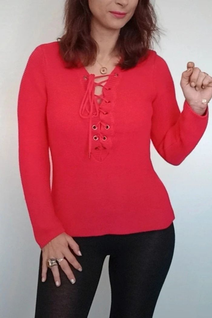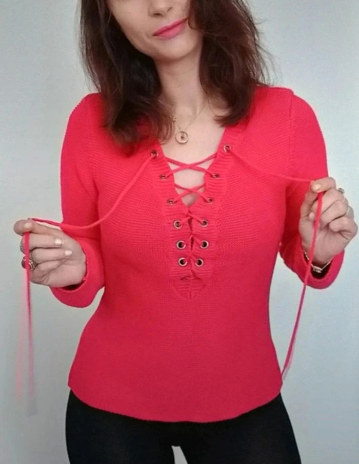 Regardez mes autres articles ds cette taille pour grouper les fdp #poupoupidou38 Pull chic uni rouge framboise, matière texturée nid d abeille de qualité, laçage féminin au décolleté, confortable et facile a assortir, marque #graindemalice38 #pullgraindemalice38 #pull38 #pullchic38 #pulltexture38 #pullframboise38 #pullniddabeille #pulllace38 #pulllacage38 #pullneuf38