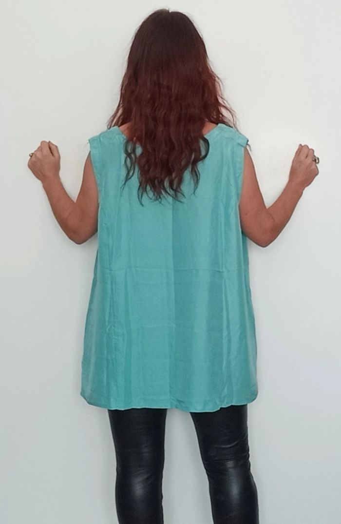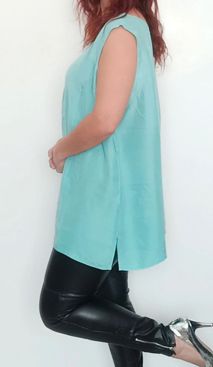 Blouse sans manche turquoise soie grande taille - photo numéro 2