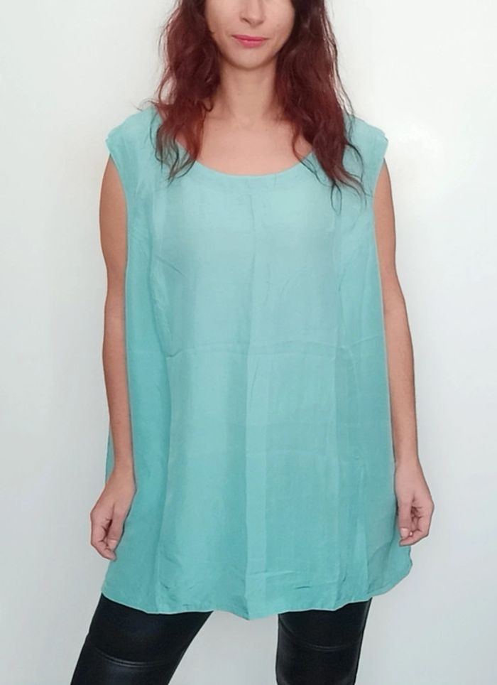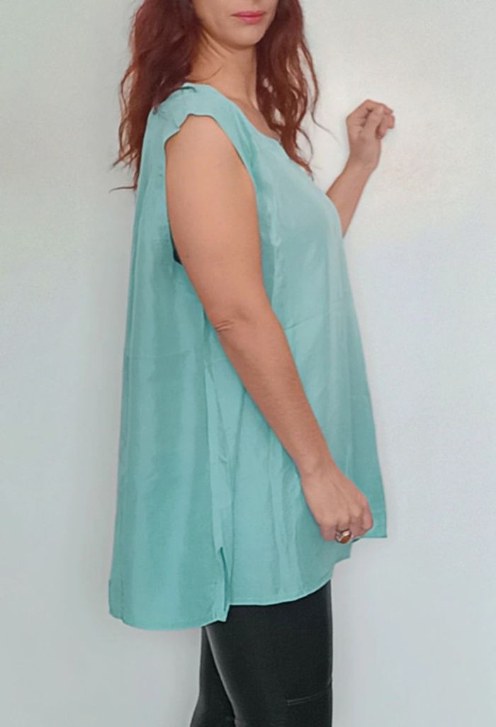 Blouse sans manche turquoise soie grande taille - photo numéro 1