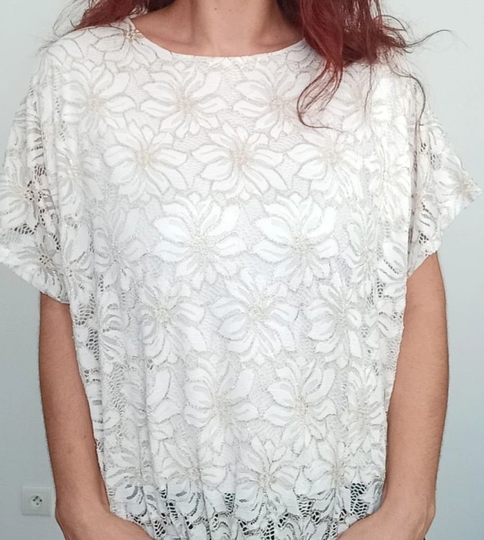 Blouse doublée dentelle fleurs dorées XL - photo numéro 1