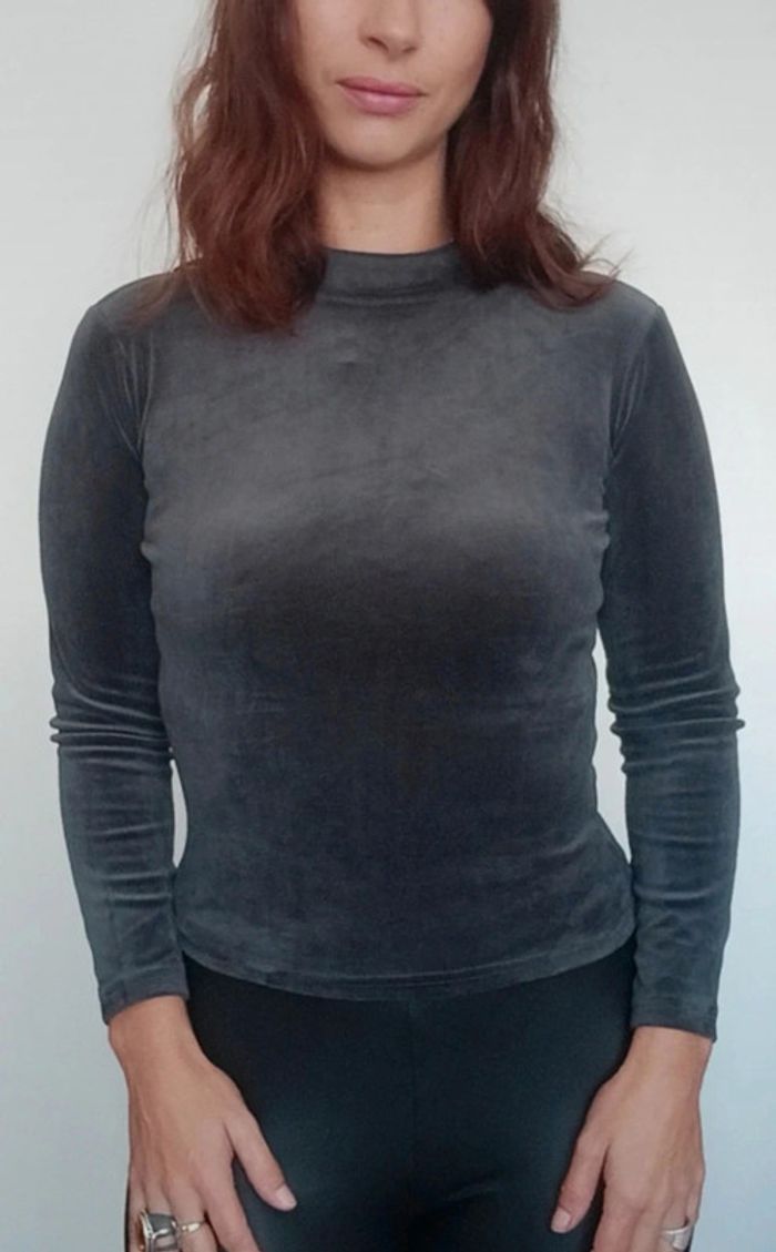 Pull moulant velours gris taille unique - photo numéro 5
