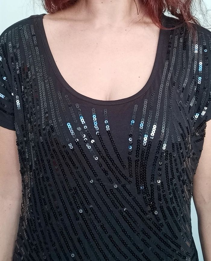 T-shirt noir fêtes sequins taille 4 - photo numéro 4