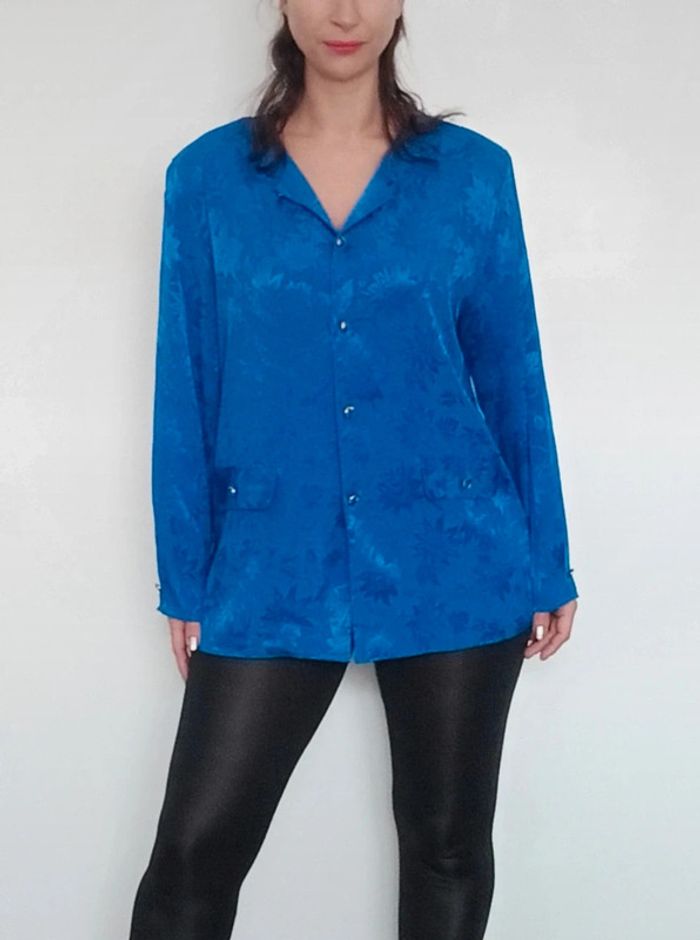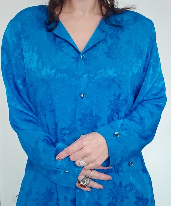 Regardez mes autres articles ds cette taille pour grouper les fdp #poupoupidou44 Chemise longue satinée bleu électrique fleurie ton sur ton, beaux boutons, douce, confortable et féminine, idéale soirée ou événement #chemisechic44 #chemisierchic44 #chemisesatin44 #chemisiersatine44 #chemisefetes44 #chemisesoiree44 #chemisebleuelectrique44 #chemisecanda44 #chemiseevenement44