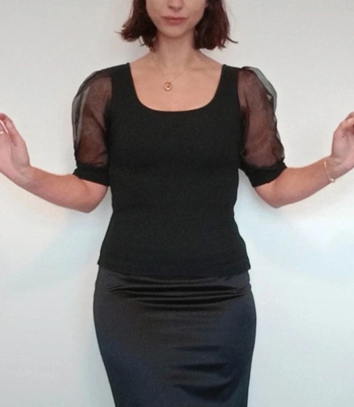 Haut soirée noir manches tulles taille 36 - photo numéro 1
