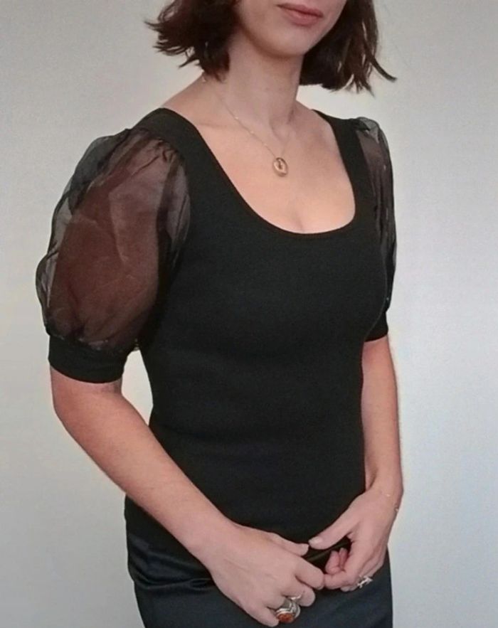Haut soirée noir manches tulles taille 36 - photo numéro 7