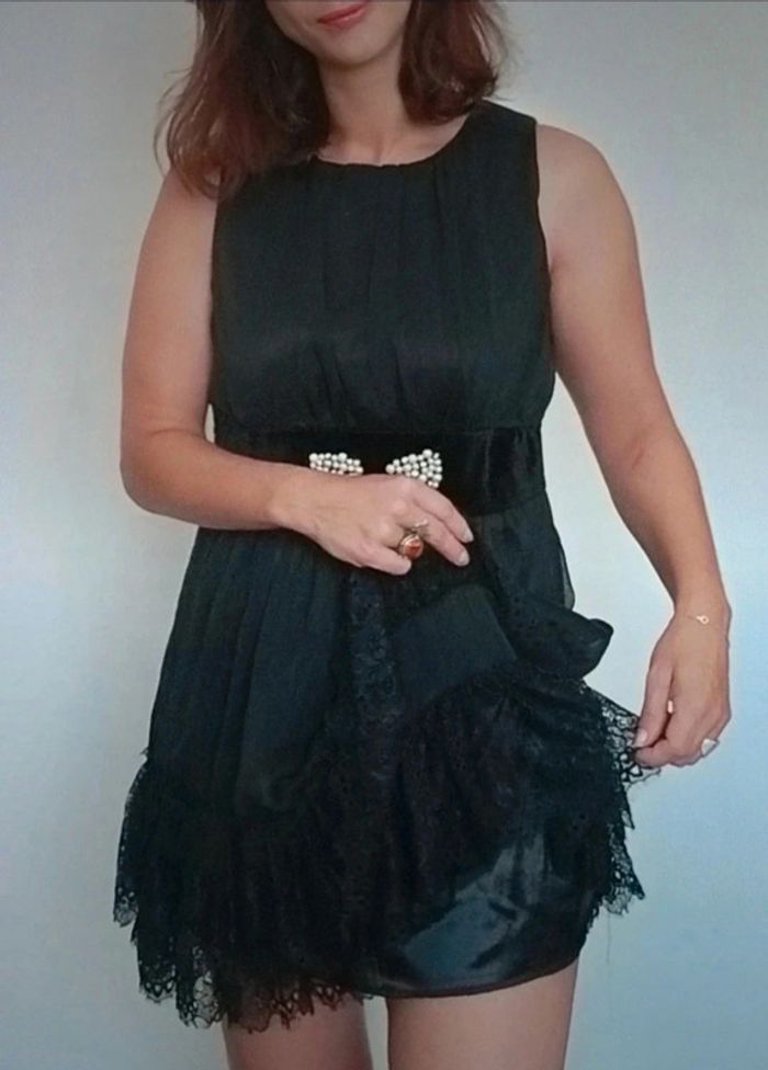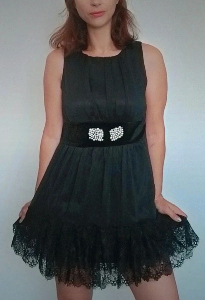 Regardez mes autres articles ds cette taille pr grouper les fdp #poupoupidoutu Robe noire vintage chic idéale cocktail, soirée ou fêtes, ceinture en velours avec perles blanches, bas de la jupe froufrou et dentelle/ crochet, taille unique jusqu au 40 max #robesoireevintage #robechic #robefetes #robereveillon #robevintage #pepitevintage #robenoirevintage #robecrochet