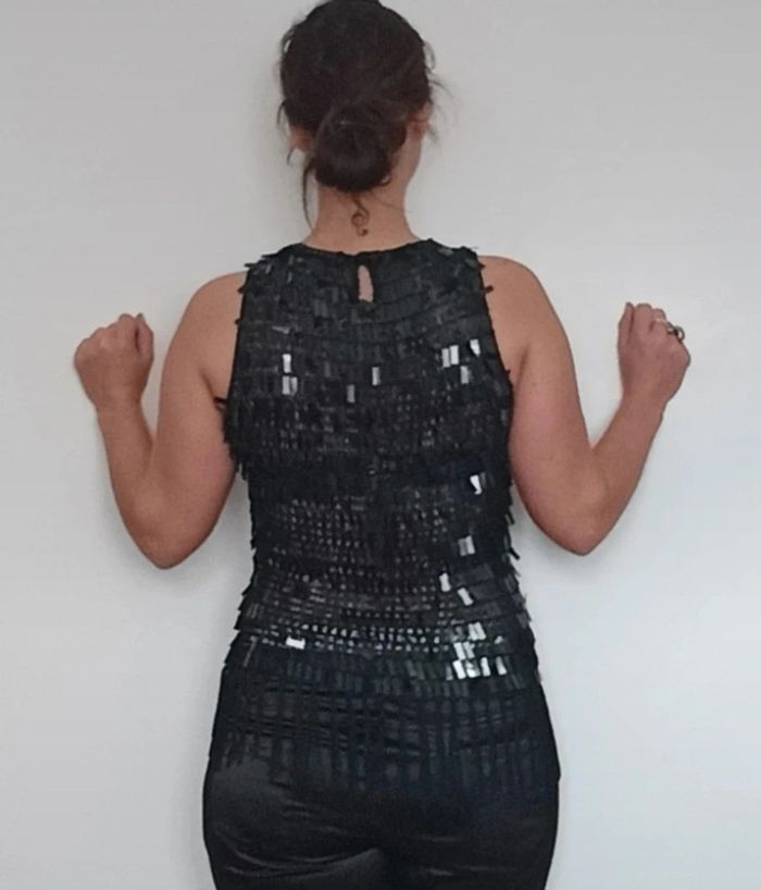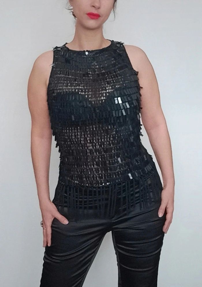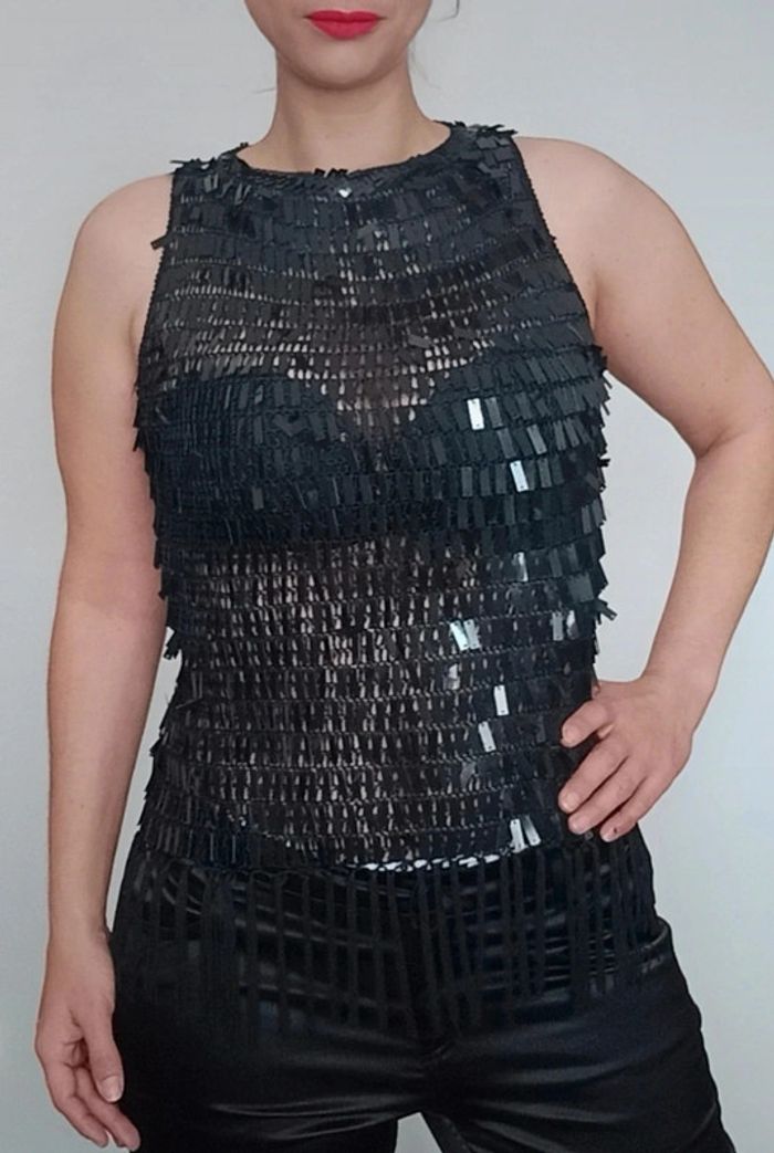 Regardez mes autres articles dans cette taille pour grouper les fdp #poupoupidoutu Top noir entièrement doublé de pampilles rectangulaires très brillantes, franges en bas, chic et sexy, matière extensible, idéal soirée ou fêtes #topsoiree #toppampilles #topfetes #hautreveillon #hautsexychic #hautbrillant #topreveillon #topbrillant