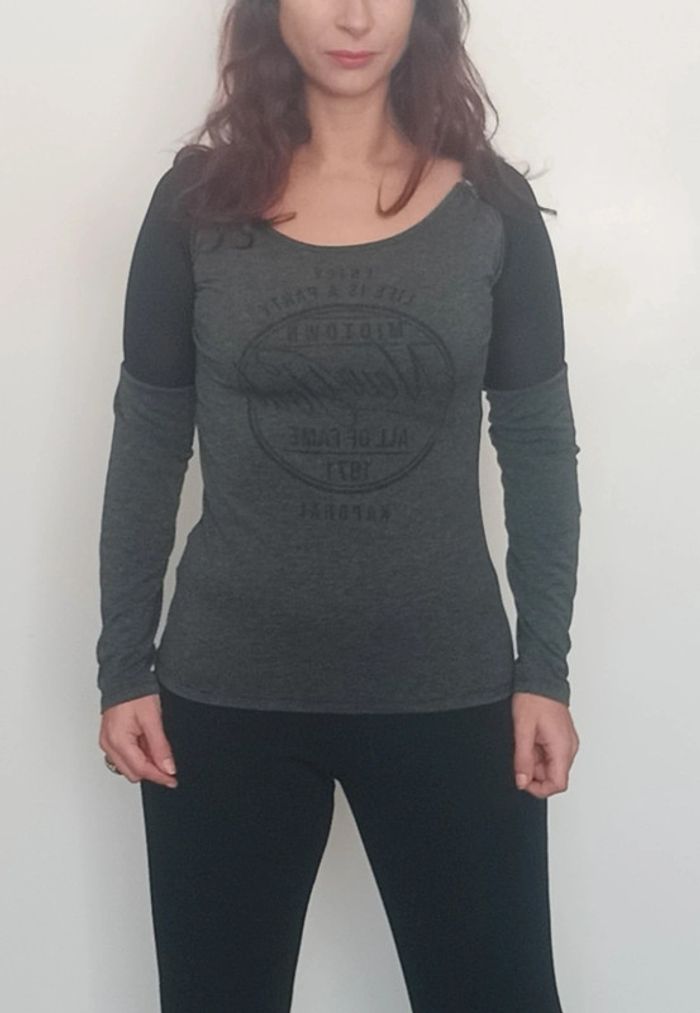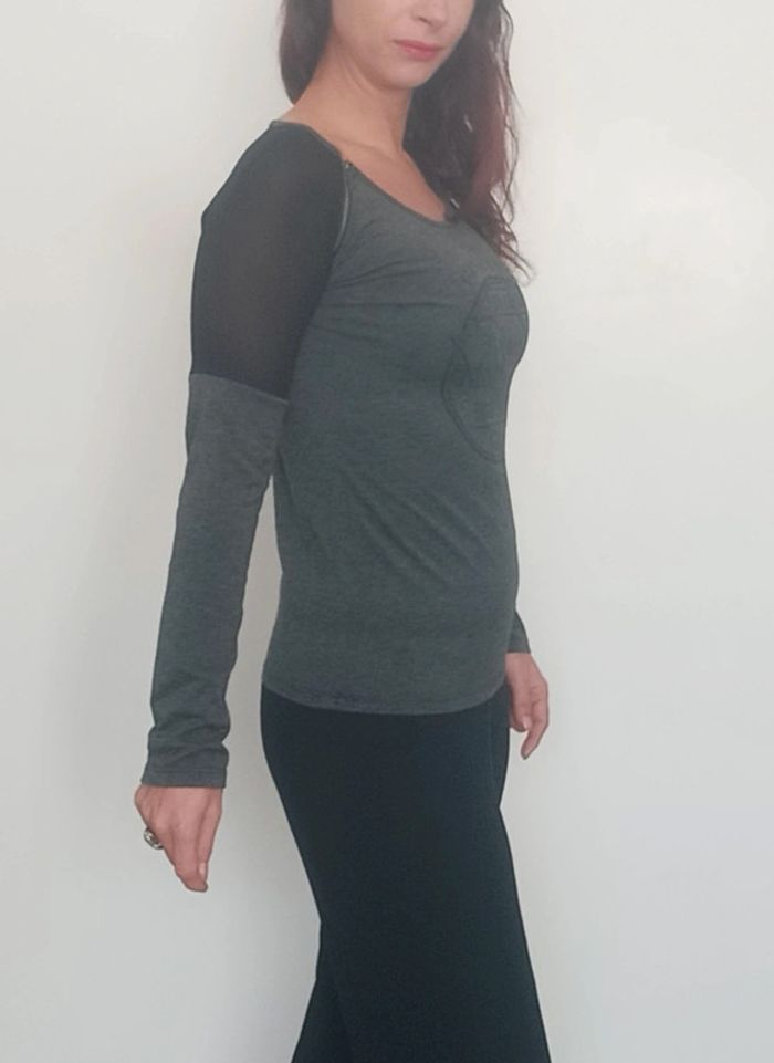 Regardez mes autres articles dans cette taille pour grouper les fdp #poupoupidou34 Blouse/ tshirt manches longues bi matière, confortable et féminin, épaules et dos nu en voile transparent noir #kaporal34 #hautkaporal34 #hautkaporalxs #blouse34 #hautdosvoile