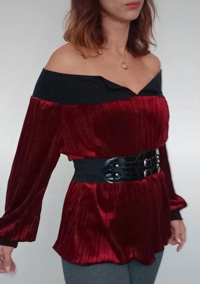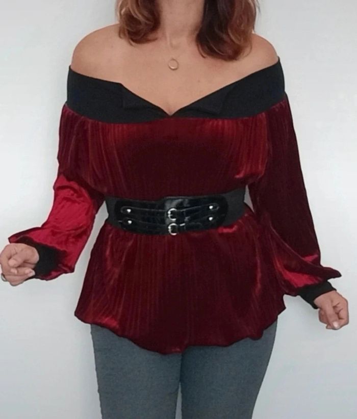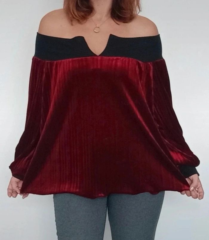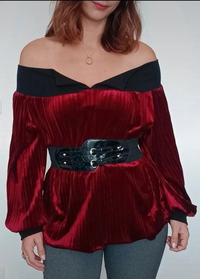 Regardez mes autres articles ds votre taille pour grouper les fdp #poupoupidoutu Haut en velours bordeaux et noir, épaules dégagées, style baroque, a cintrer avec une ceinture ou laisser fluide, neuf, idéal soirée ou fêtes #hautvelours #hautfetes #pullvelours #blousevelours #hautbaroque #hautbordeaux #hautchic #hautnoel #blousebaroque