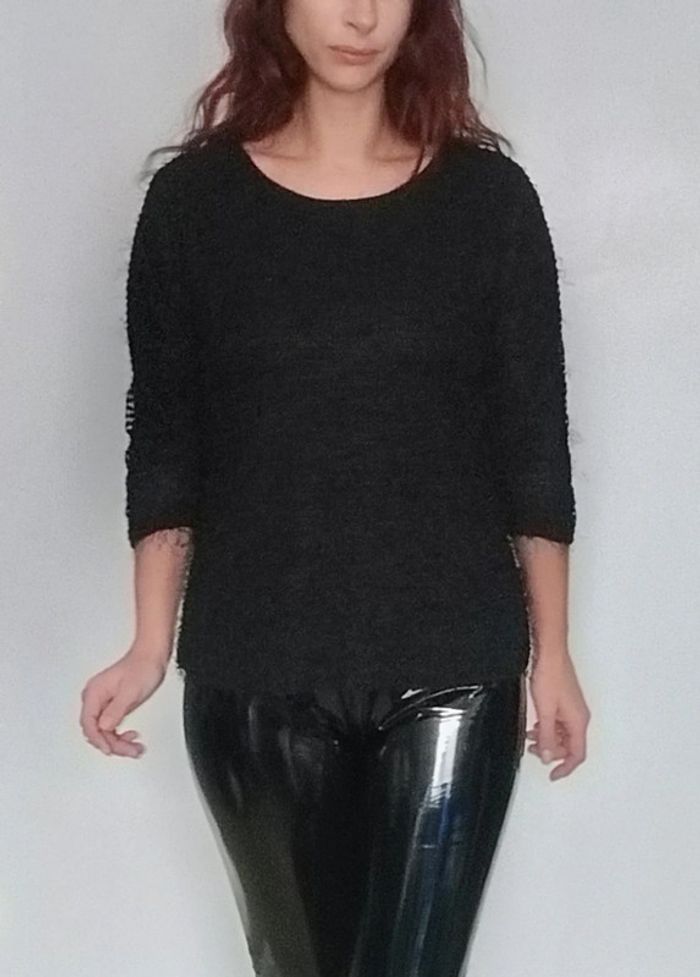 Pull noir poilu ajouré aux manches taille 3 - photo numéro 1