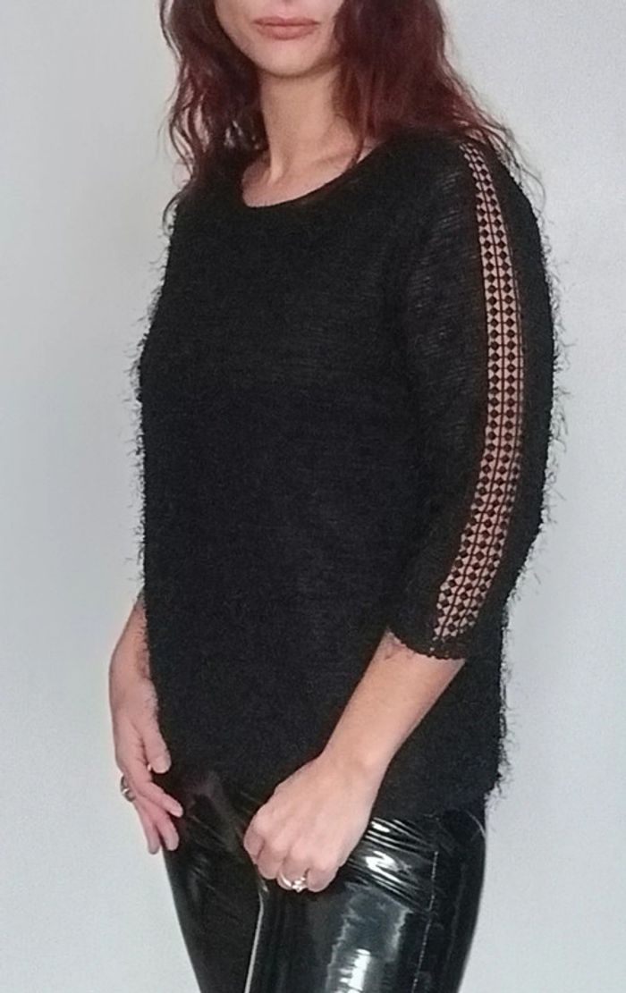 Pull noir poilu ajouré aux manches taille 3 - photo numéro 2