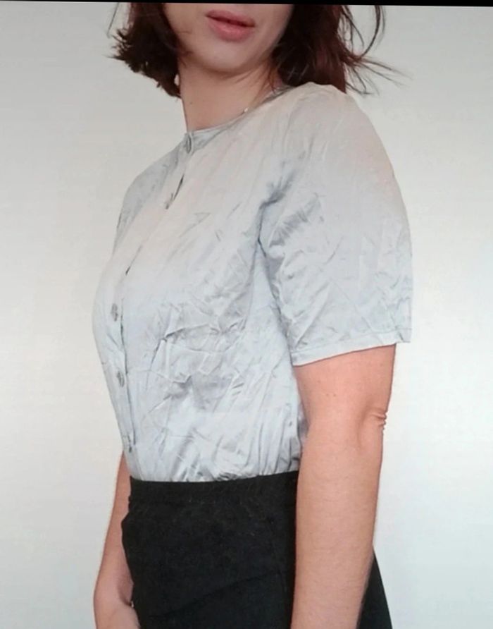Chemisier en soie chic argentée vintage tu - photo numéro 3