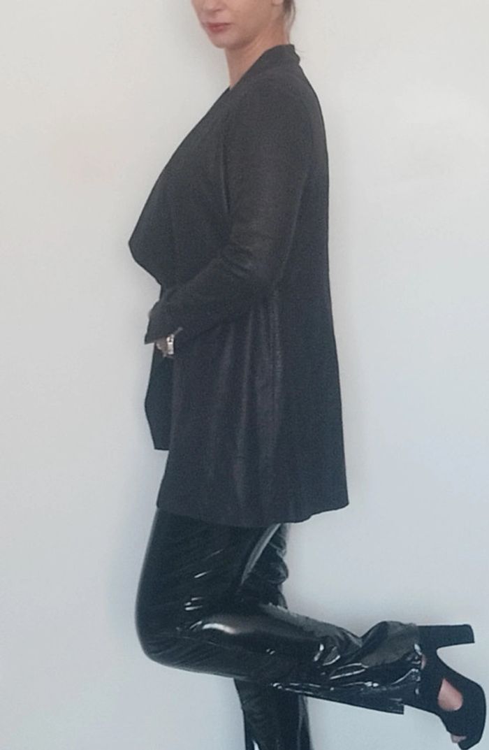 Regardez mes autres articles ds cette taille pour grouper les fdp #poupoupidoutu Veste très chic, ouverte, asymétrique. Unie noire en similicuir toucher doux type daim, coupe et matière de qualité, facile a porter et a assortir, détail fermetures éclairs aux poignets #vestechic #vesteouverte #vestesimilicuir #vestedaimnoir #vestesexy #vesteasymetrique #vestesoiree #vestenoir