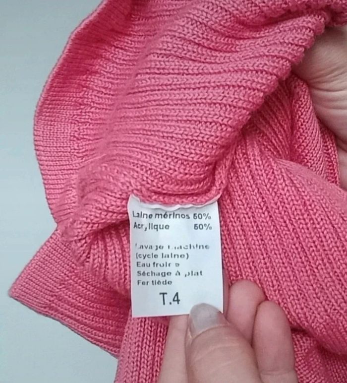 Pull d hiver uni rose taille 4 - photo numéro 4