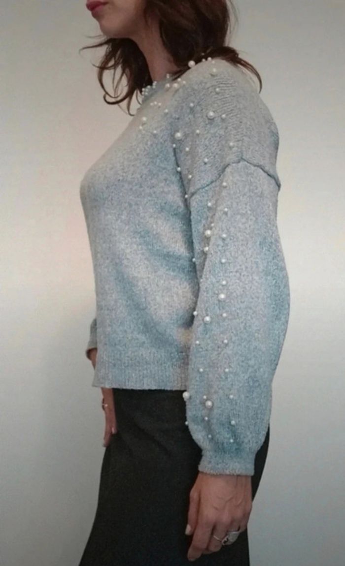 Pull gris perles blanches fêtes taille 38 - photo numéro 2
