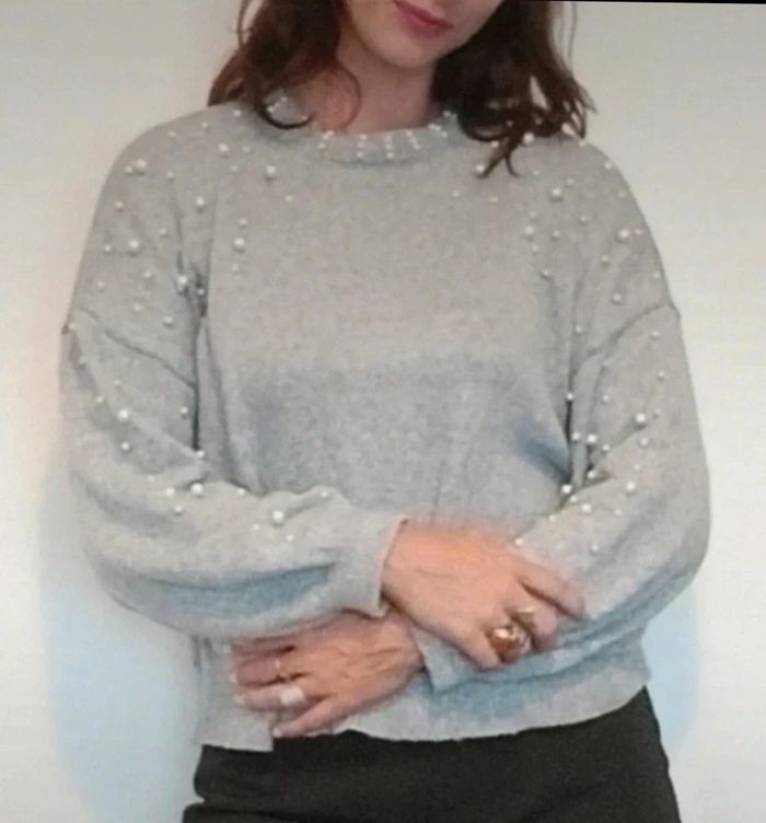 Pull gris perles blanches fêtes taille 38 - photo numéro 1