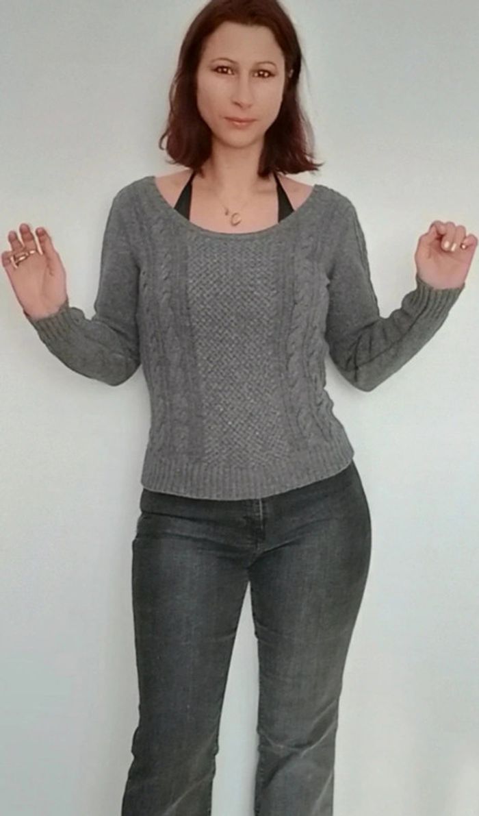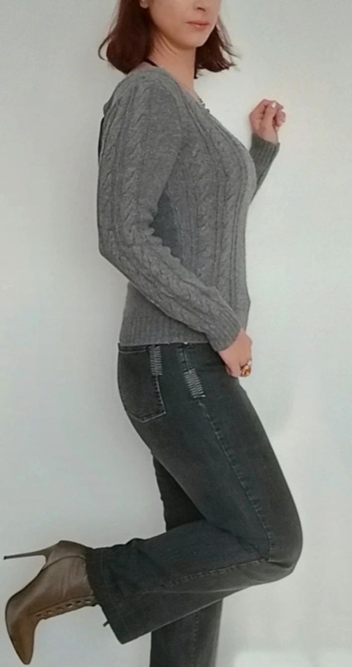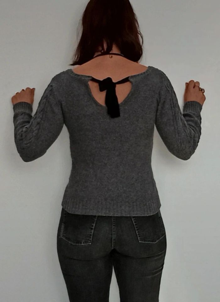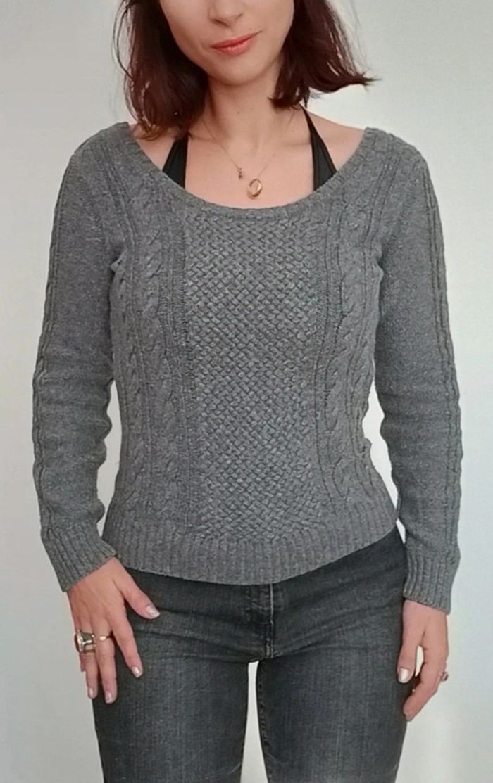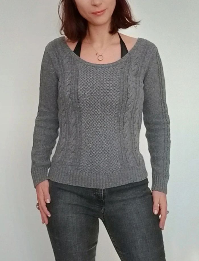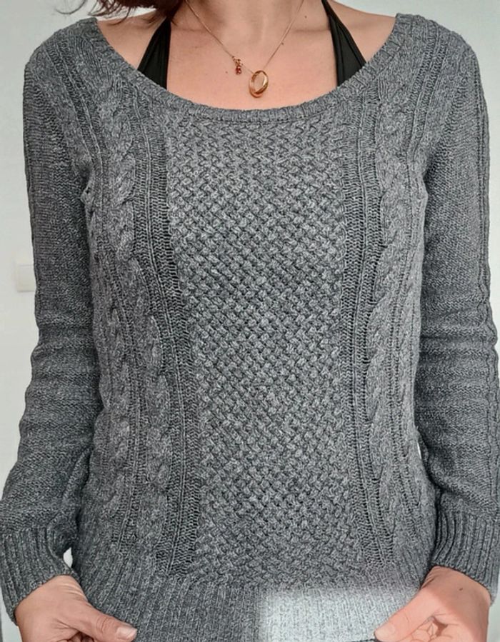 Pull gris torsadé large encolure TU - photo numéro 7