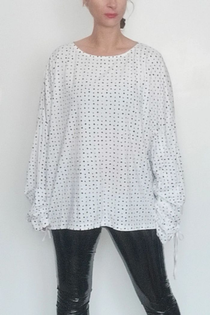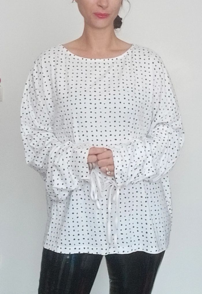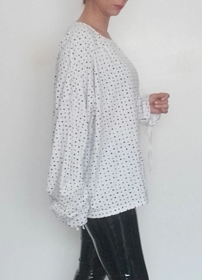 Regardez mes autres articles dans cette taille pour grouper les fdp #poupoupidou50 #poupoupidou52 T-shirt blanc à pois noir, confortable et casual, détail fronçage aux poignets, facile a porter et a assortir, taille 50/52 mesures exactes sur demande #hautgrandetaille #tshirtgrandetaille #tshirtmancheslongues50 #tshirtmancheslongues5052 #tshirtmancheslongues52 #tshirt5xl #tshirt6xl