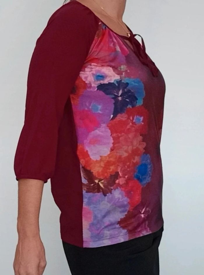 Blouse bordeaux fleurie taille 38 - photo numéro 3