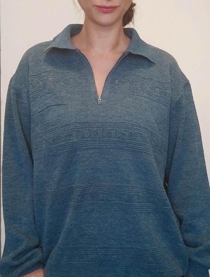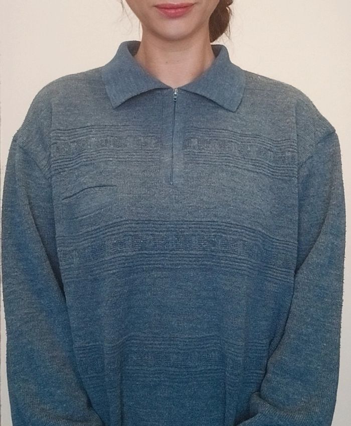 Pull bleu col zippé Afibel taille 44 - photo numéro 6