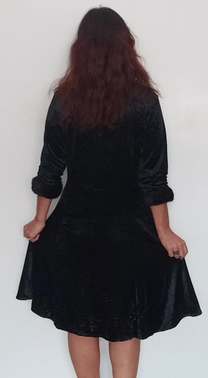 Robe velours noir vintage col et poignets fourrure - photo numéro 3
