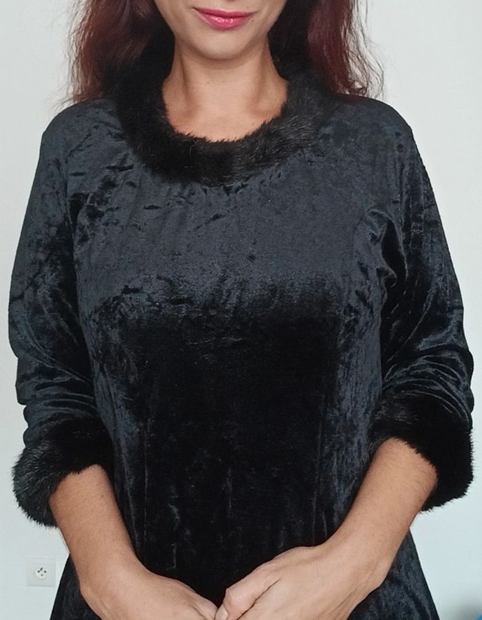 Robe velours noir vintage col et poignets fourrure - photo numéro 1