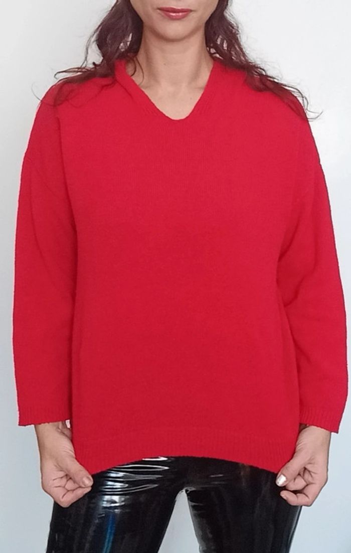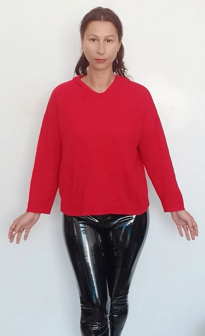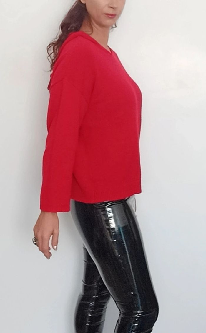 Pull loose a capuche uni rouge taille 40 - photo numéro 5