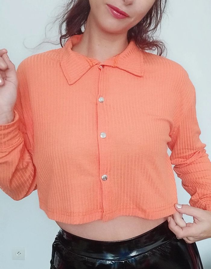 Regardez mes autres articles dans votre taille pour grouper les fdp #poupoupidou40 Polo cotelé court style streetwear loose confortable avec bouton et col, uni orange très sympa, a porter sur un jean ou sur une robe #polocourt40 #hautcourt40 #hauttendance40 #hautmancheslongues40 #hautsympa40 #hautloose40 #hautorange40