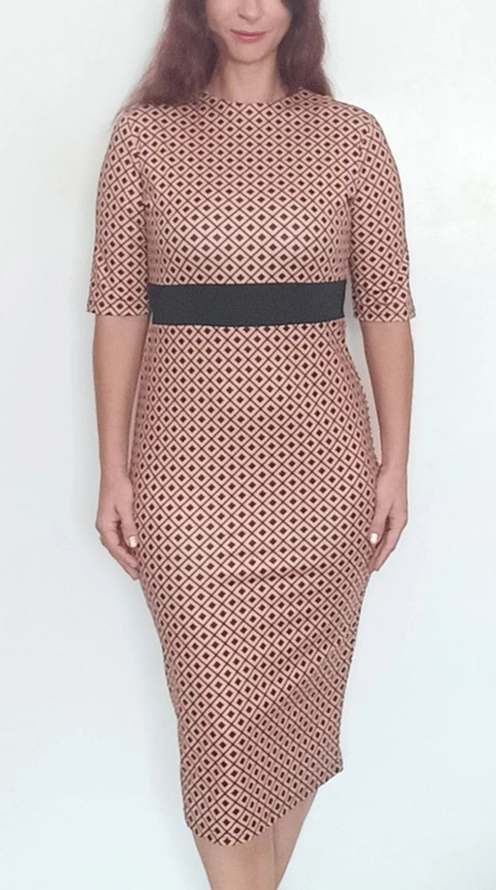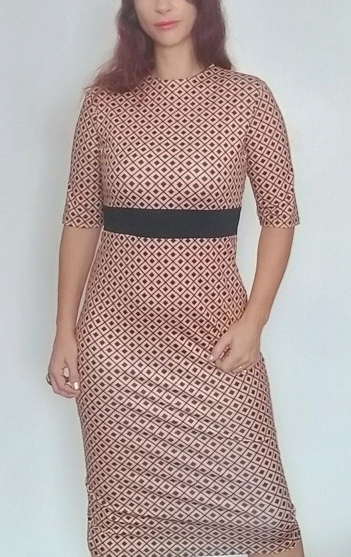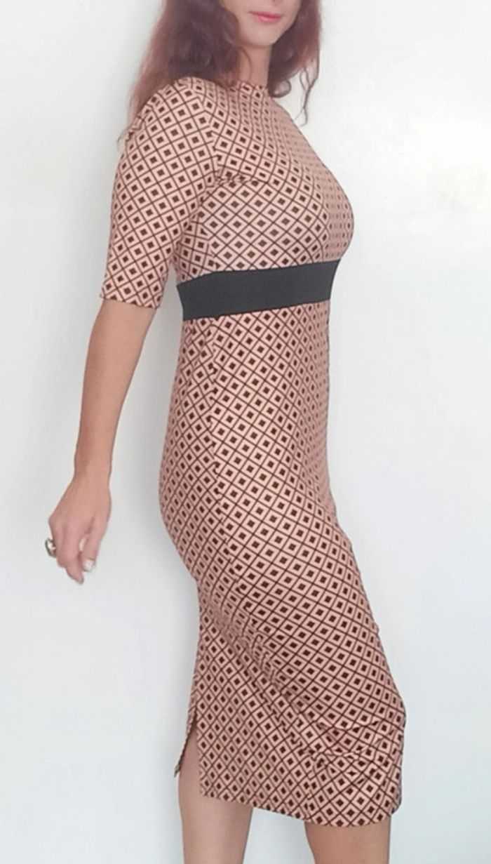 Regardez mes autres articles dans votre taille pour grouper les fdp #poupoupidou40 Robe douce longueur sous genoux très chic, manches courtes, près du corps matière extensible, effet taille empire avec bande noire sous poitrine, style rétro pinup, #robe40 #robechic40 #roberetro40 #robeelegante40 #robepinup40 #robevintage40 #robeautomne40