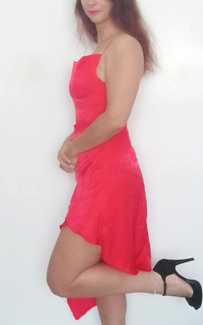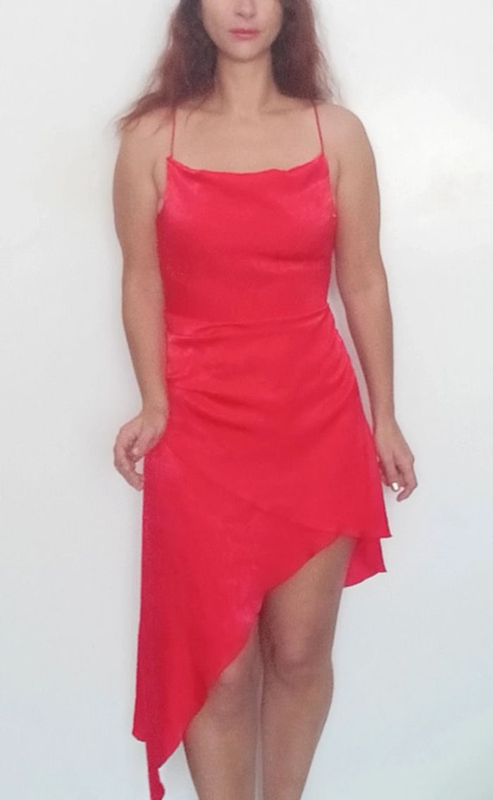 Robe chic en satin rouge asymétrique 36 - photo numéro 1
