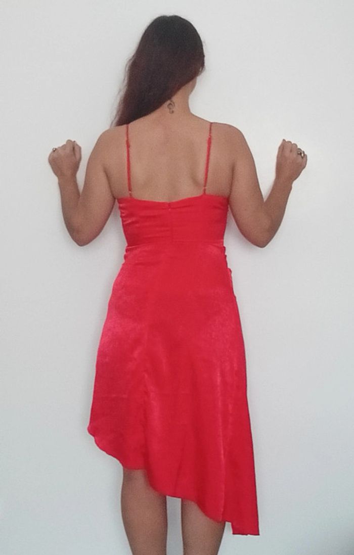 Robe chic en satin rouge asymétrique 36 - photo numéro 6