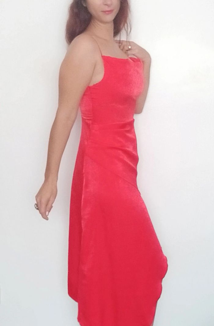 Robe chic en satin rouge asymétrique 36 - photo numéro 3
