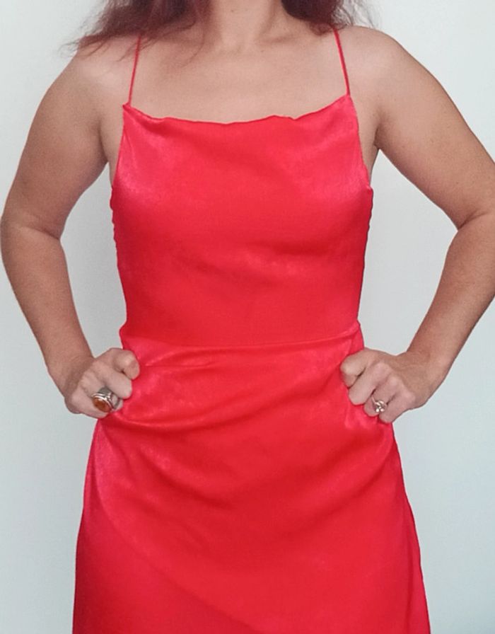 Robe chic en satin rouge asymétrique 36 - photo numéro 9