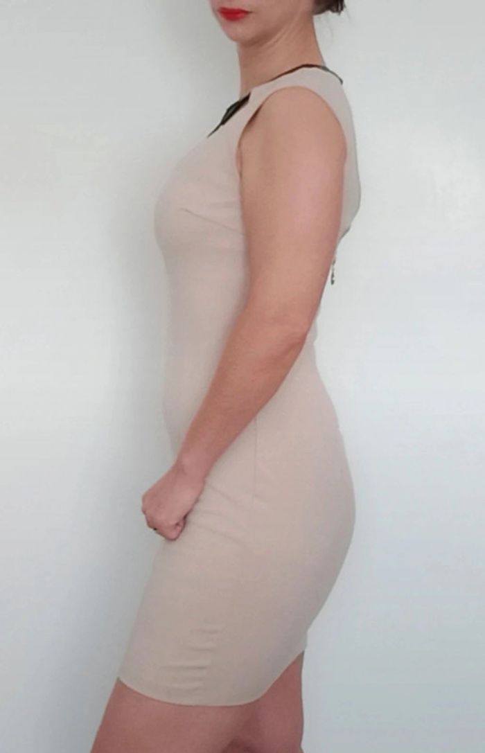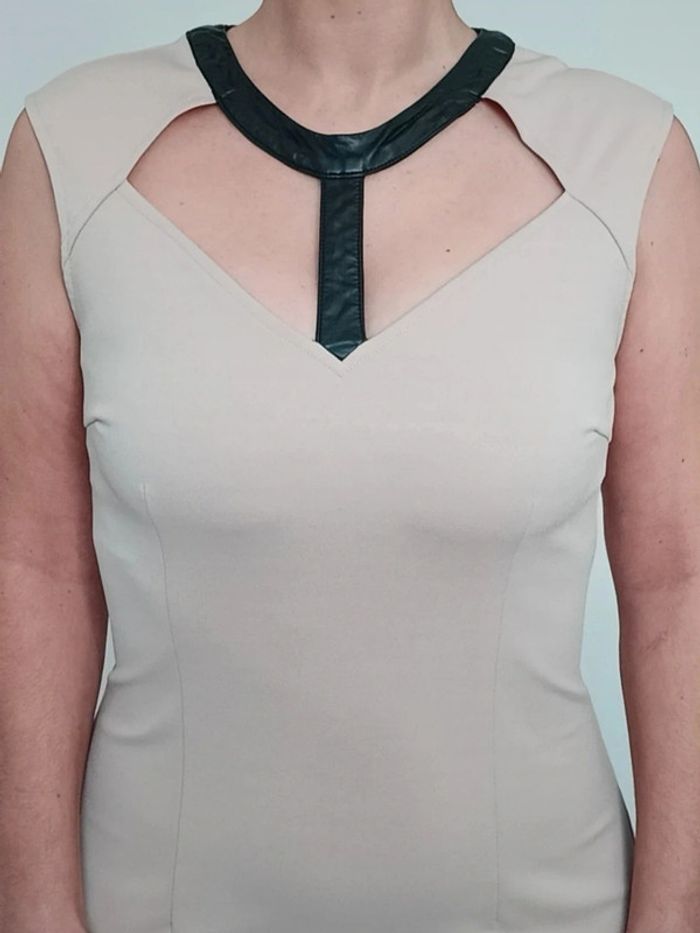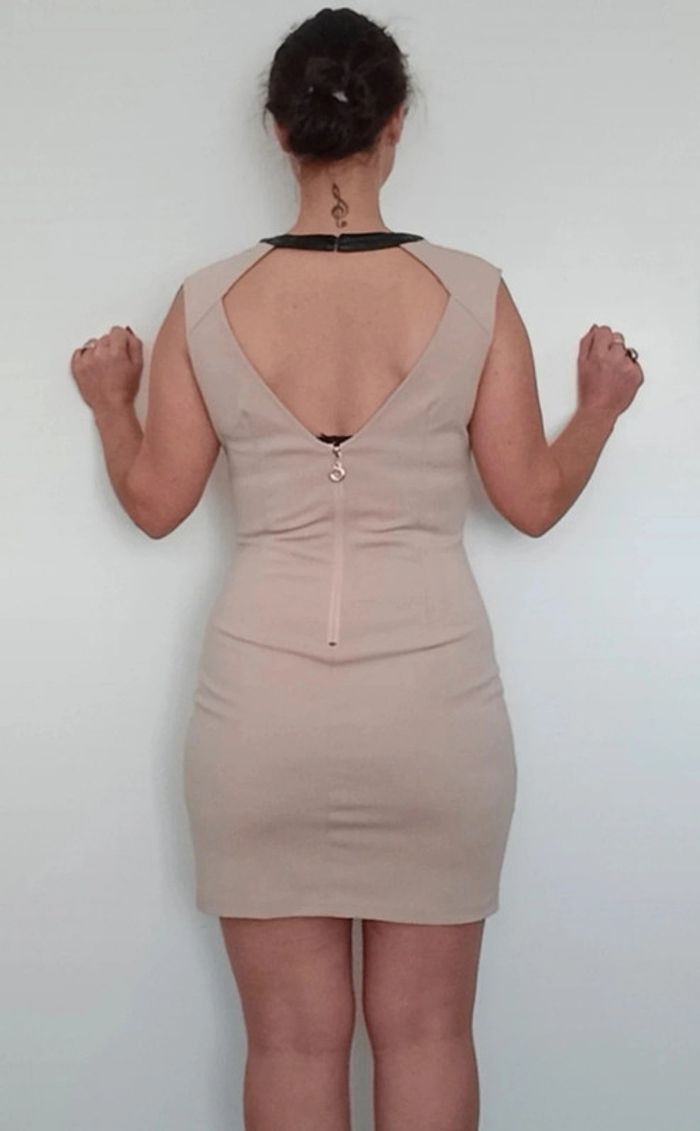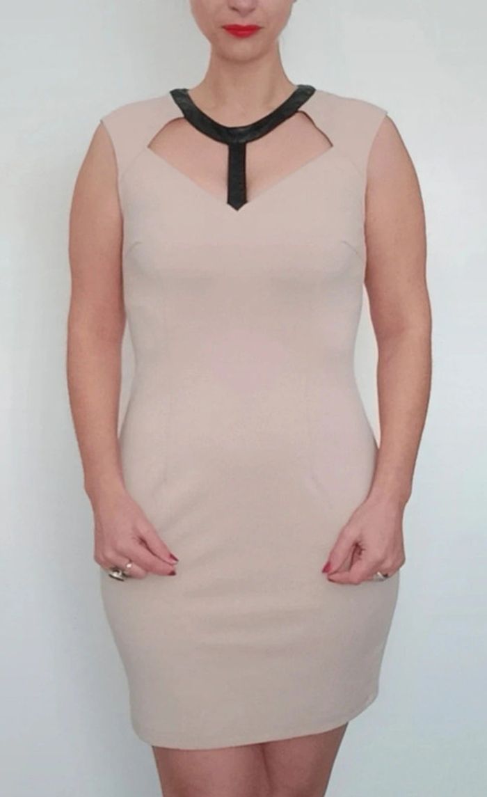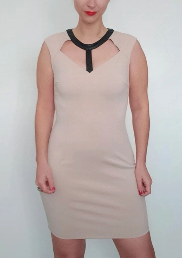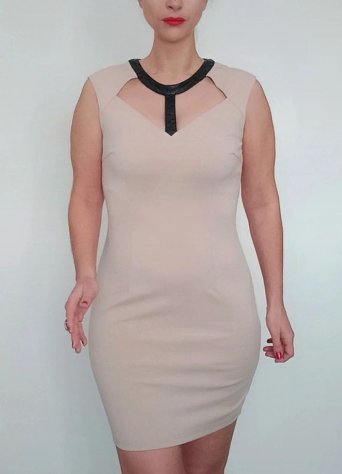 Regardez mes autres articles dans votre taille pour grouper les fdp #poupoupidou40 Robe de soirée moulante, manches courtes et dos nu, couleur beige / nude avec détail similicuir noir au décolleté, sexychic idéale soirée ou événement #robereveillon40 #robesexychic40 #robesoiree40 #robedecolletee40 #robepinup40 #robeevenement40 #robefetes40 #robesexy40 #robenude40 #robedosnu40