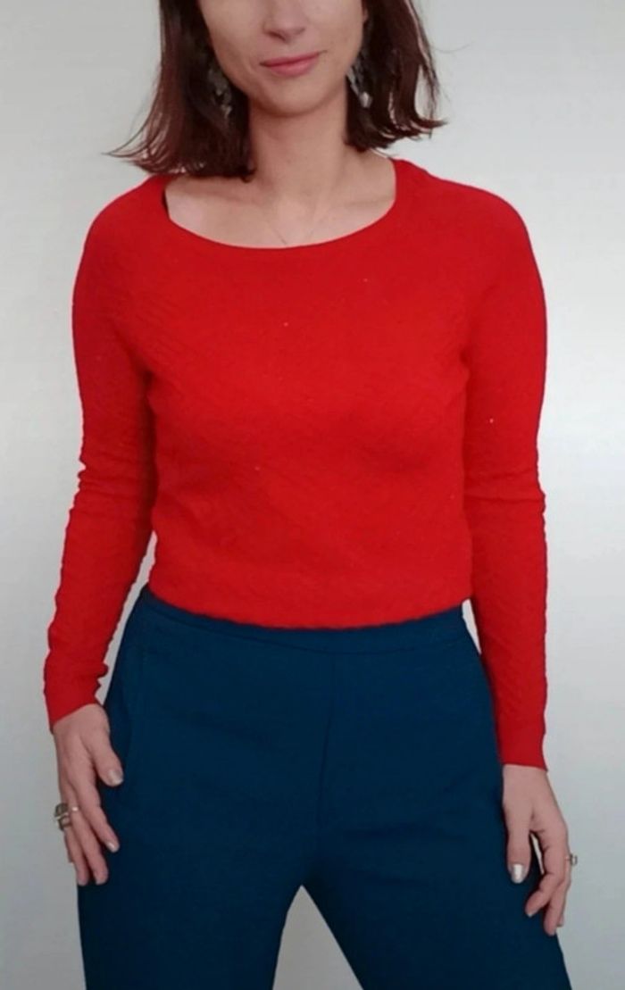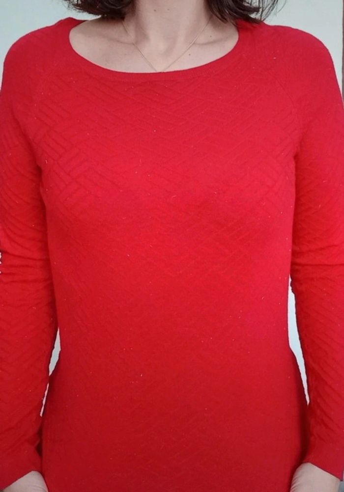 Pull fin rouge texturé pailleté taille 38 - photo numéro 7