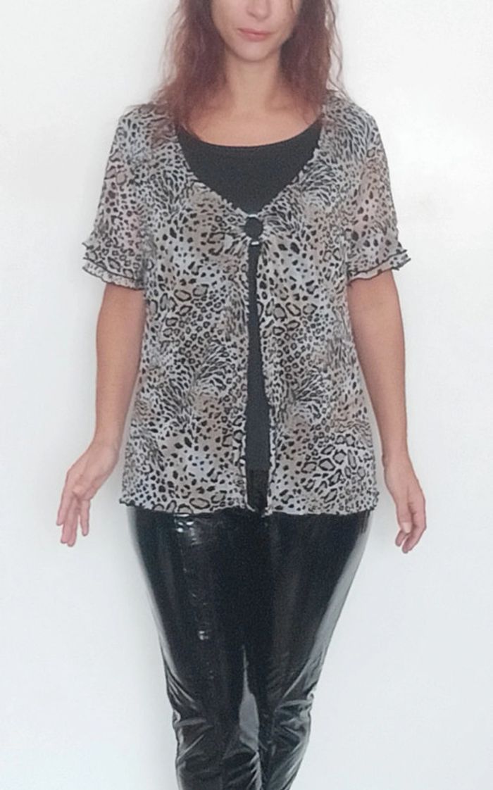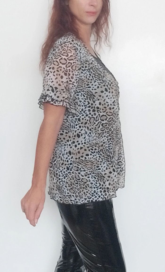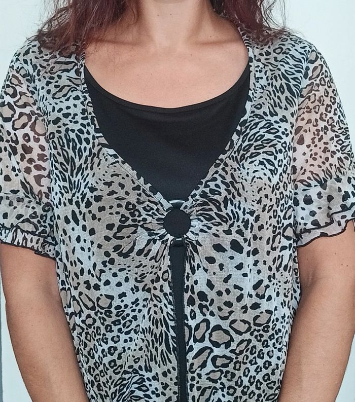 Regardez mes autres articles dans votre taille pour grouper les fdp #poupoupidouxl Haut en deux parties: t-shirt uni noir et doublure voie manches courtes, motif léopard, fluide, chic, féminin et confortable #hautxl #hautleopard42 #hautleopardxl #hautcasualchic42 #hautchic42 #blouseleopard42