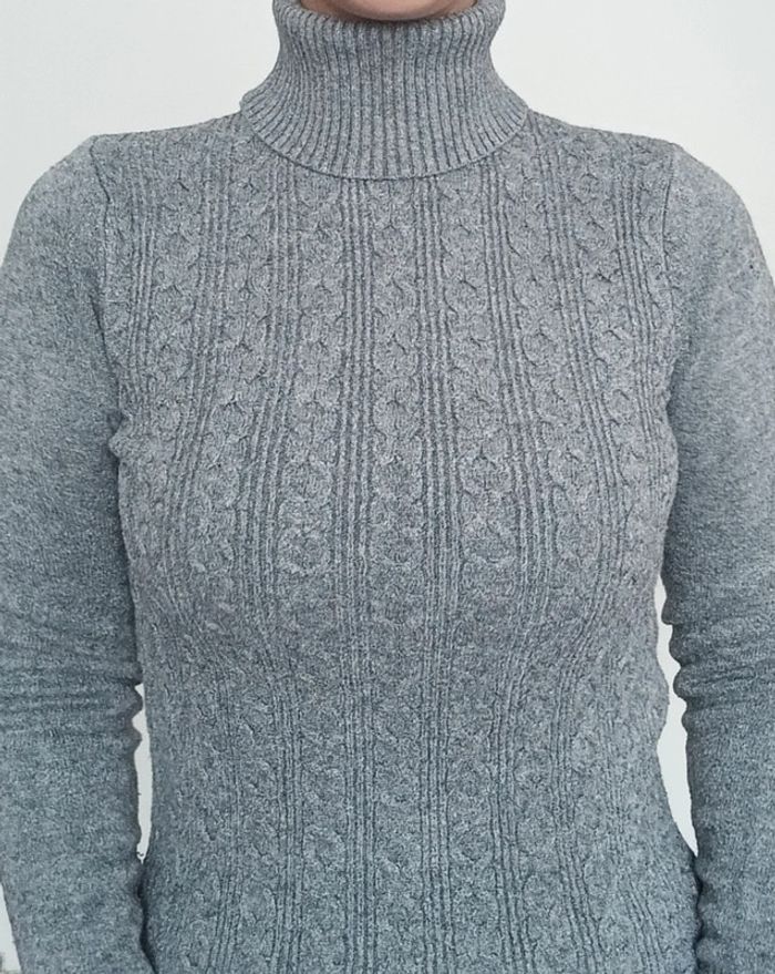 Pull gris texturé moulant à col roulé - photo numéro 3