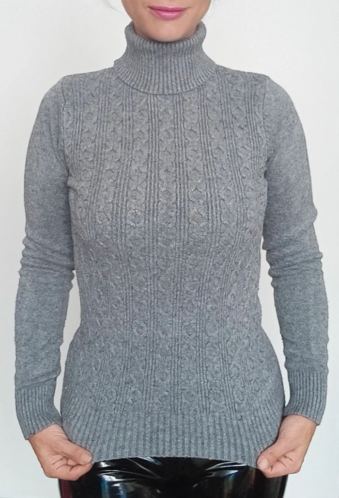 Pull gris texturé moulant à col roulé - photo numéro 1
