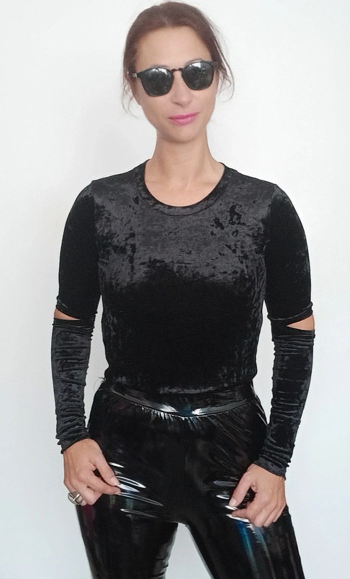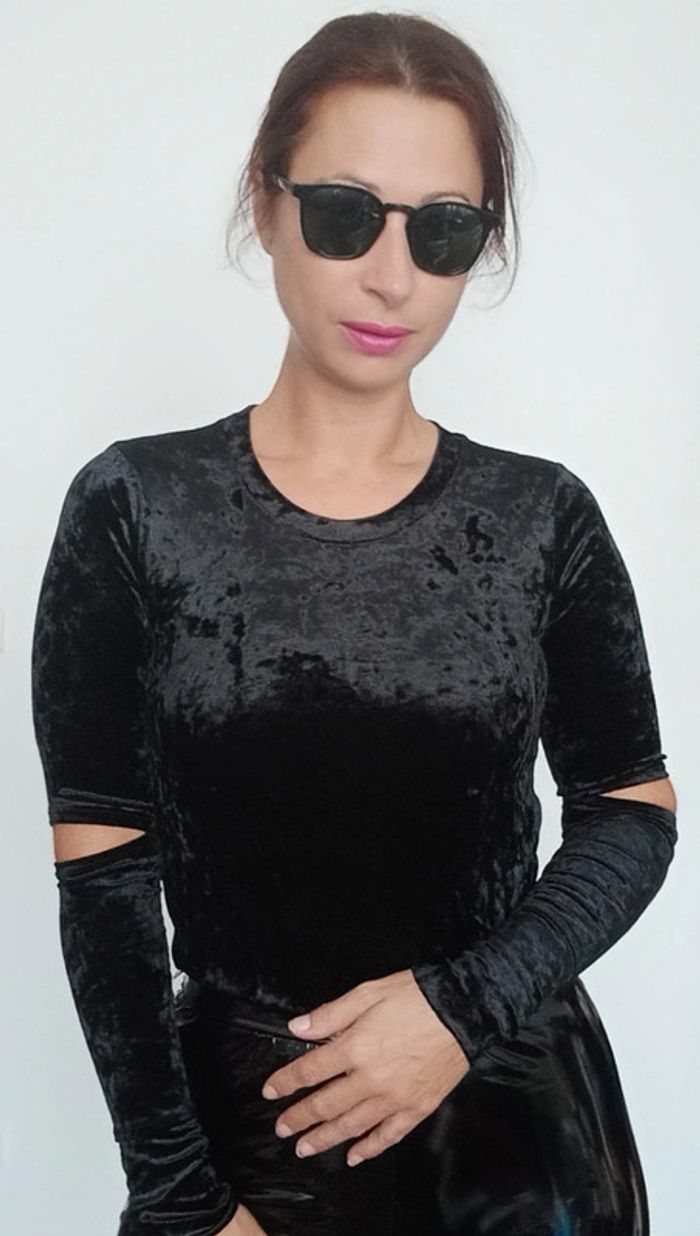 Haut velours noir manches longues ouvertes 36 - photo numéro 1