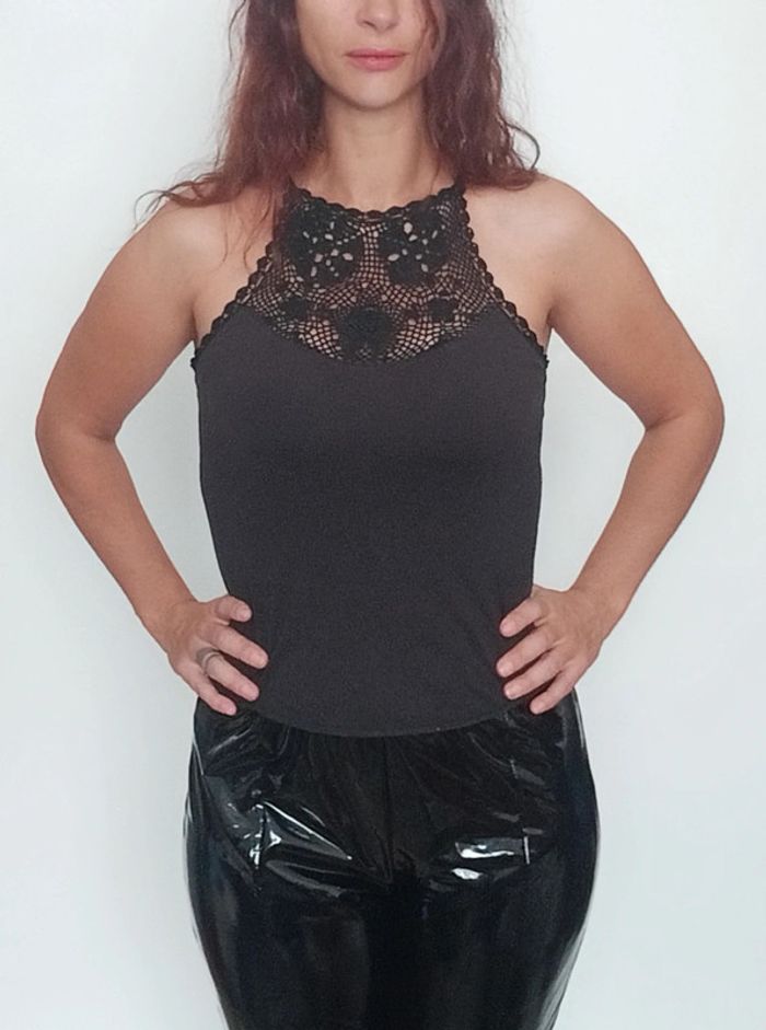 Top noir décolleté crochet taille 42 - photo numéro 1