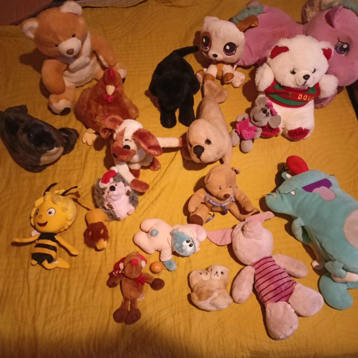 Diverses peluches dispos, plusieurs tailles et style, Disney, rétro, stroumph, little pet shop, nounours, mailla l abeille, range pyjama, poney etc ...Manque la poule sur la photo déjà vendue. 20 euros le lot de 18 peluches ( faites moi l offre) ou contactez moi pour une annonce de ceux qui vous plaisent, entre 1 et 8 euros pour le range pyj... #lotpeluches #peluche #peluchedisney #pelucheporcinet #pelucheponey #pelucheenfant #doudous #lotdoudous #peluchepetshop #peluchelittlestpetshop
