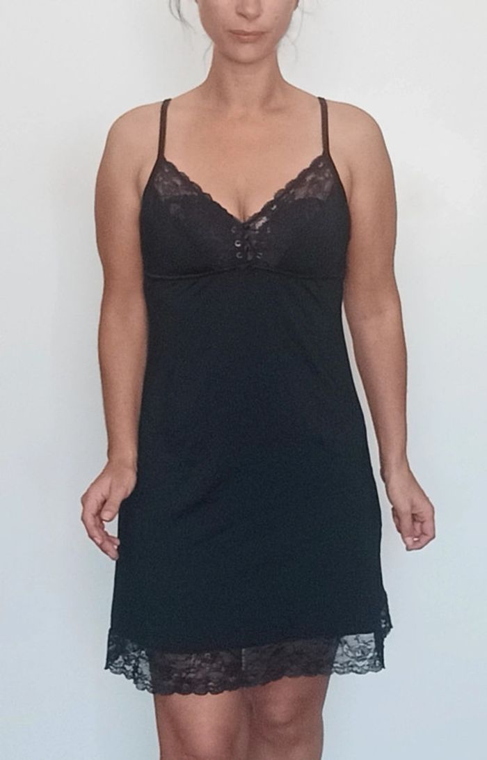 Nuisette noire douce empiècements dentelle - photo numéro 1