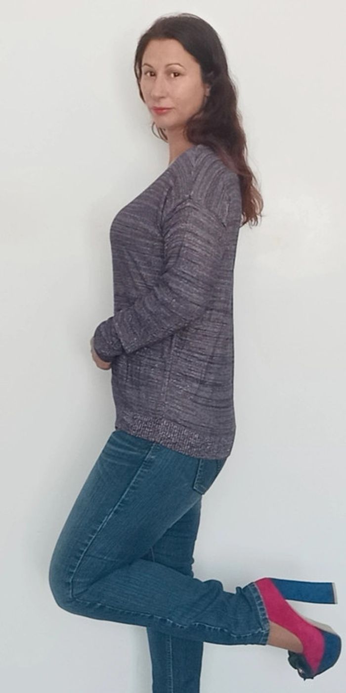 📣 regardez mes autres articles dans votre taille à #poupoupidoutu pour économiser sur les frais de ports et bénéficier d'une réduction 😊🌸 -10% pour deux articles achetés -20% pour trois et + Faites moi l'offre ( pas encore automatique) 🫶🫶🫶🫶🫶🫶🫶 Pull fin pailleté idéal mi saison, facile a porter et a assortir, idéal soirée ou événement, bleu/ violet et or #pullfin #pullpaillete #pullmarine #pullsoiree #pullpaillettes #pullfetes #pullloose #pullcasualchic